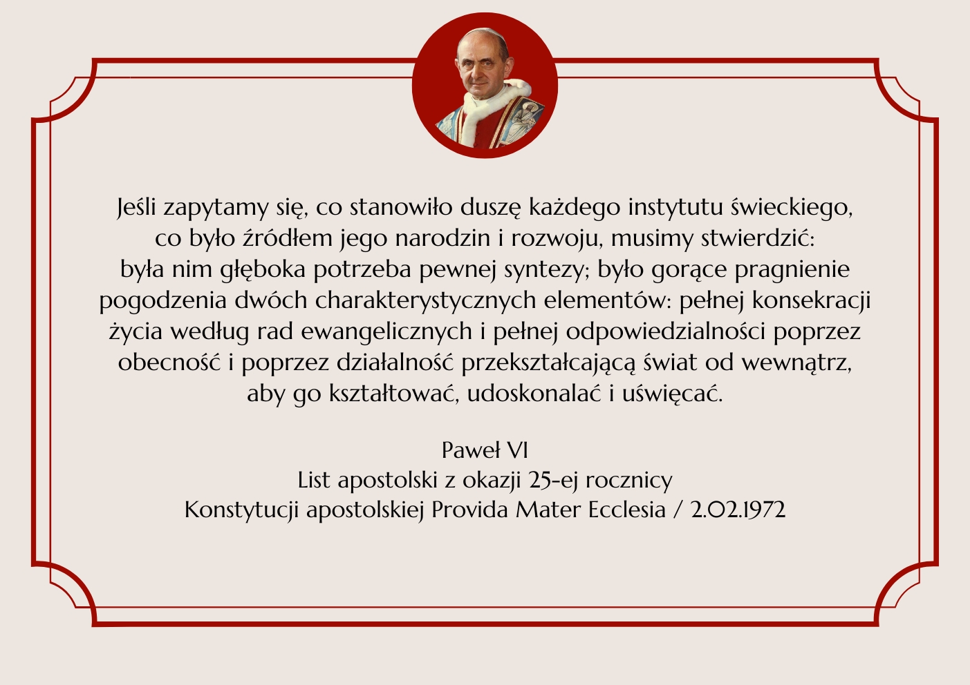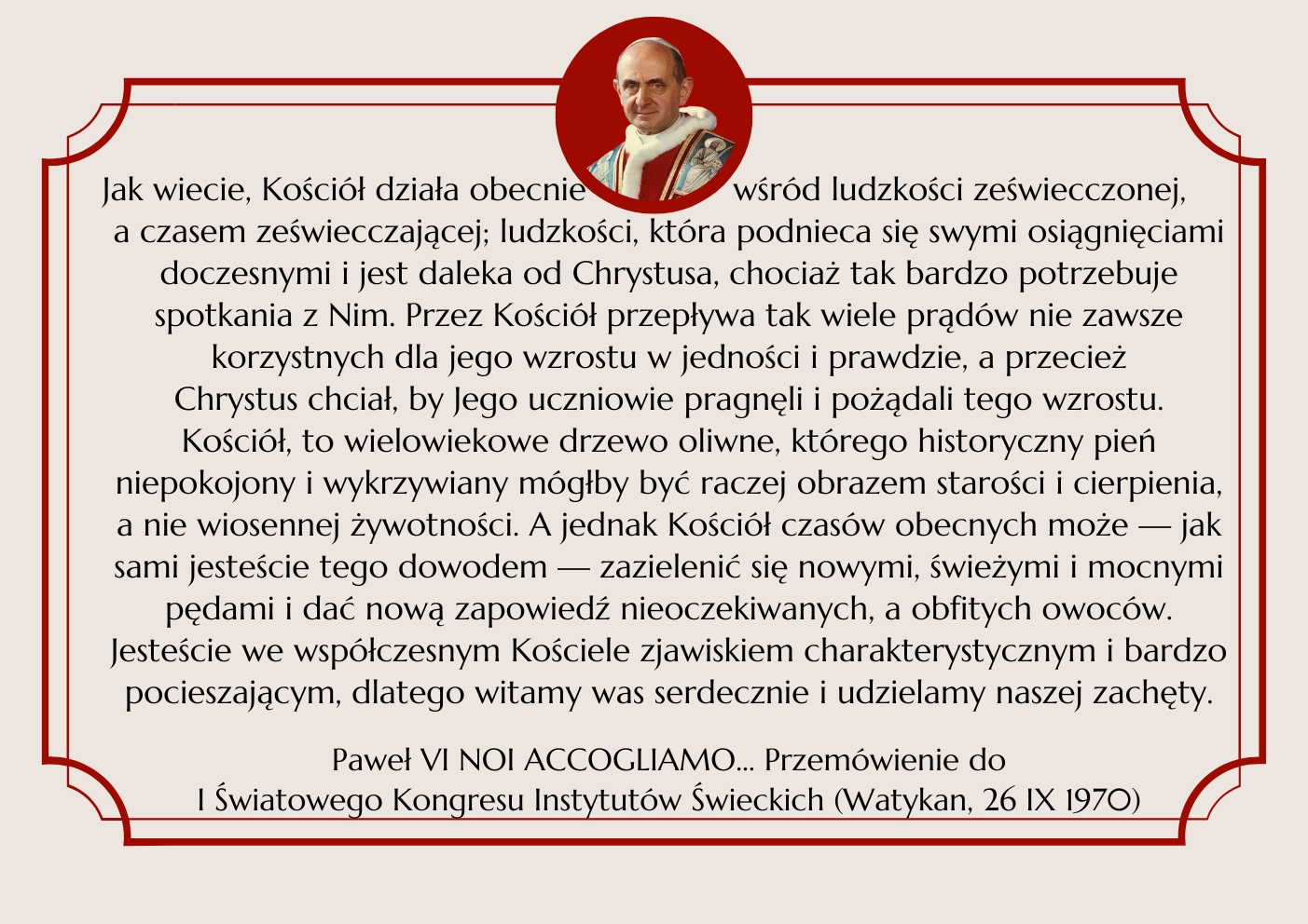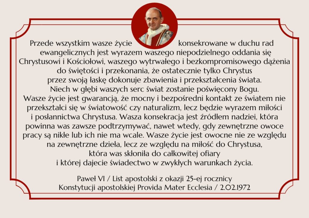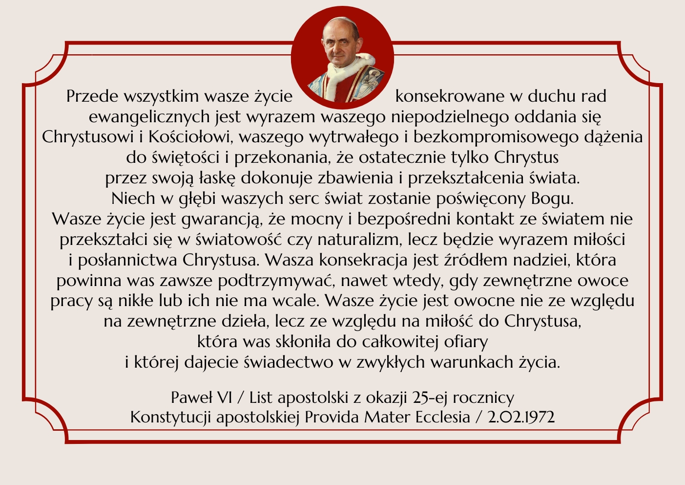 PAWEŁ VI ELIANUM ŚWIECKI INSTYTUT ŻYCIA KONSEKROWANEGO MENU HISTORIA WSPÓLNOTA ŚW. ELIASZ MULTIMEDIA KONTAKT
