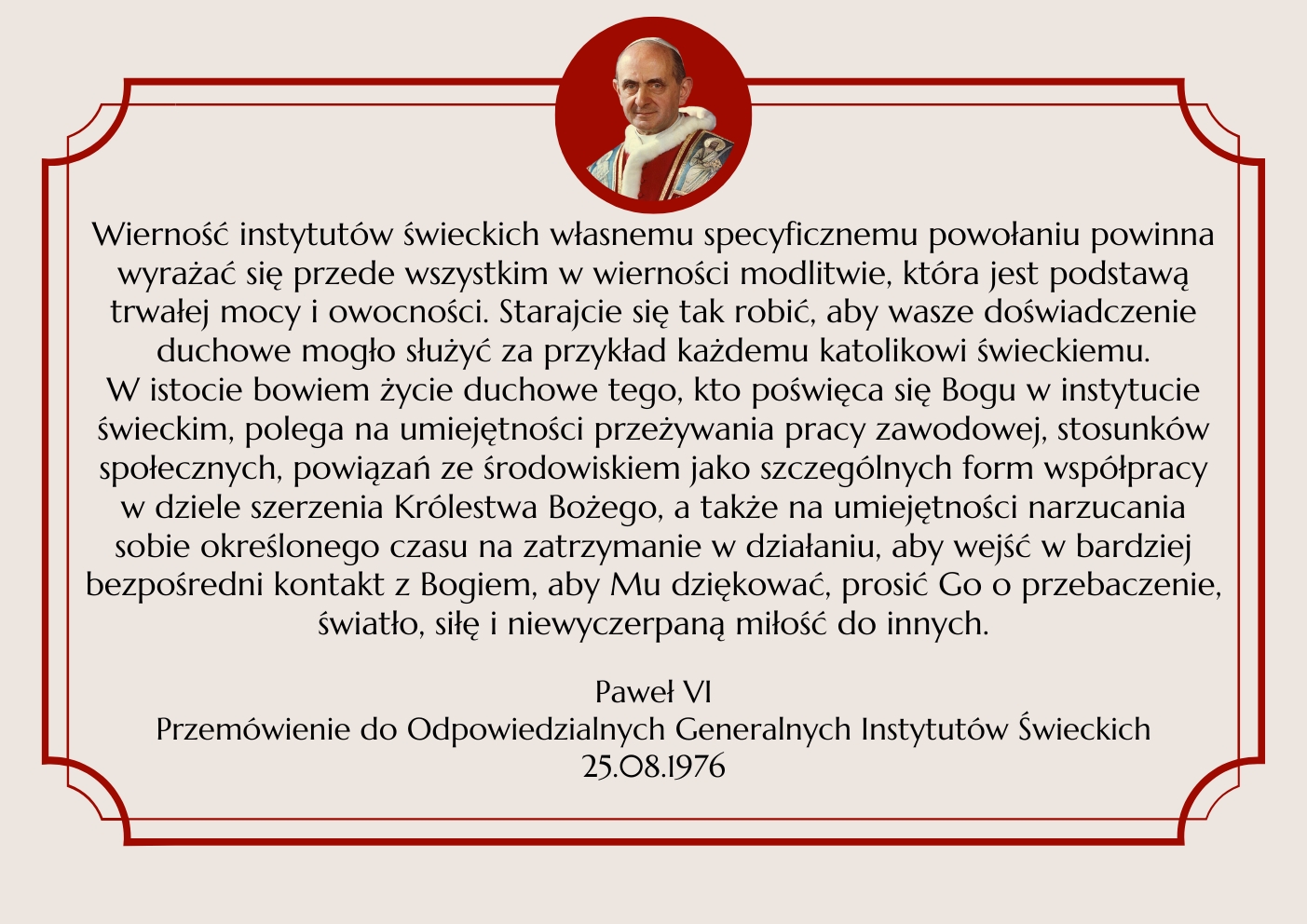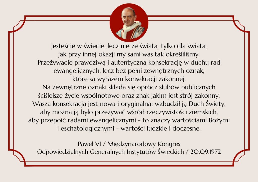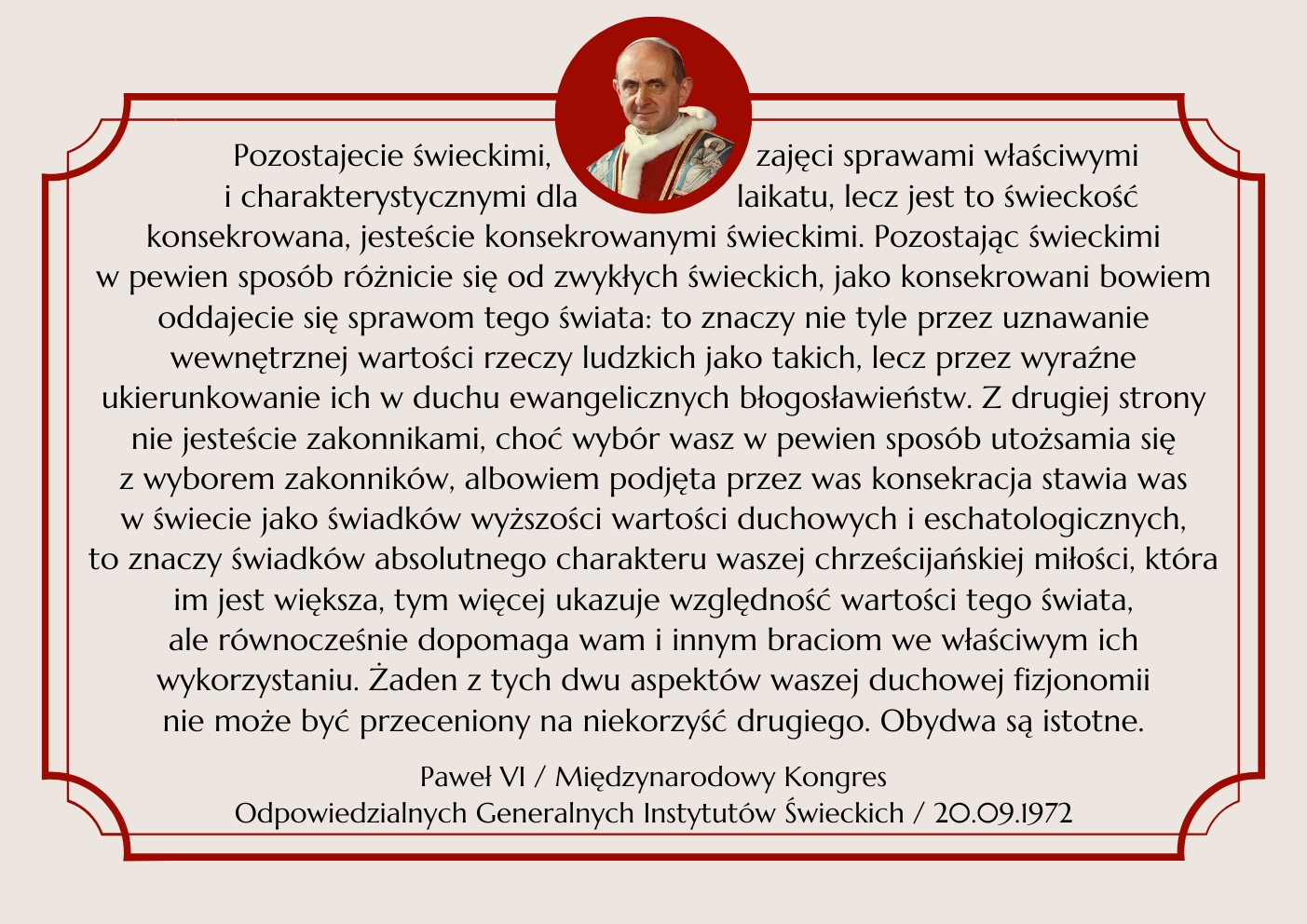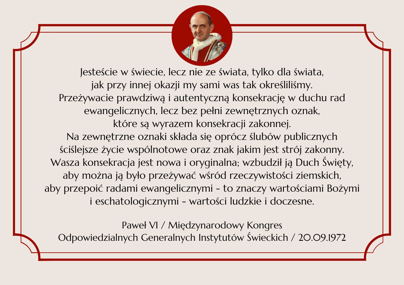 PAWEŁ VI ELIANUM ŚWIECKI INSTYTUT ŻYCIA KONSEKROWANEGO MENU HISTORIA WSPÓLNOTA ŚW. ELIASZ MULTIMEDIA KONTAKT