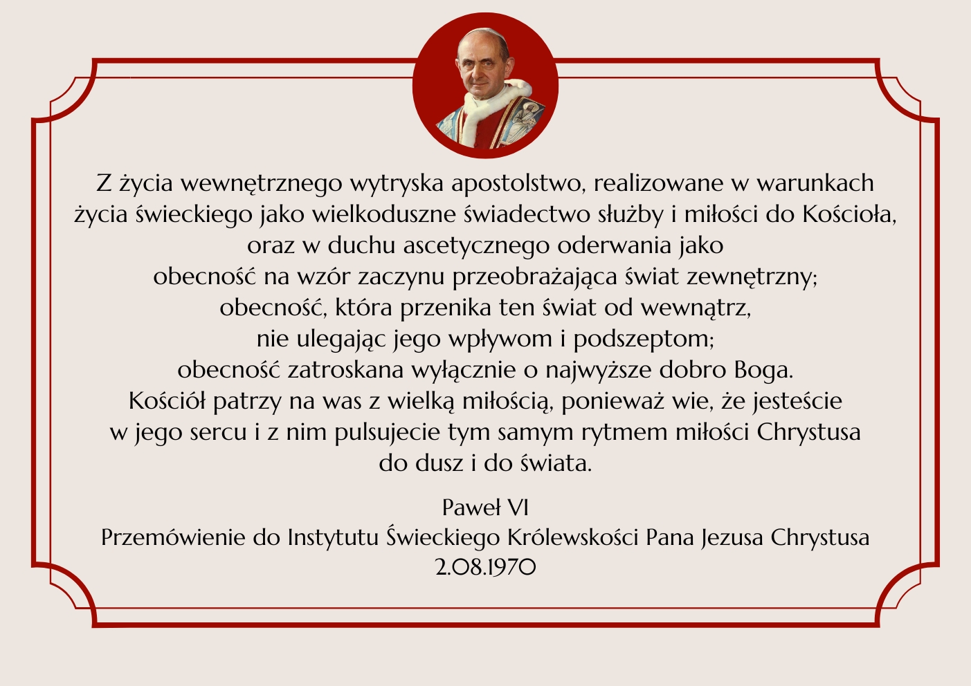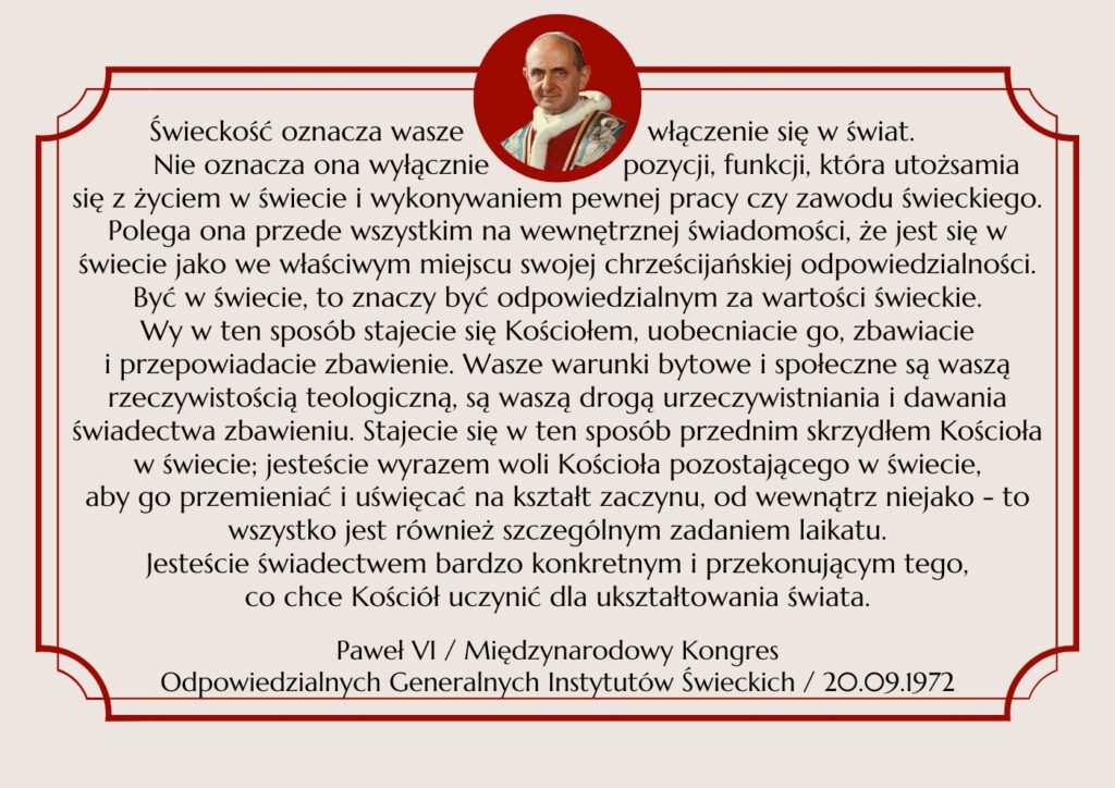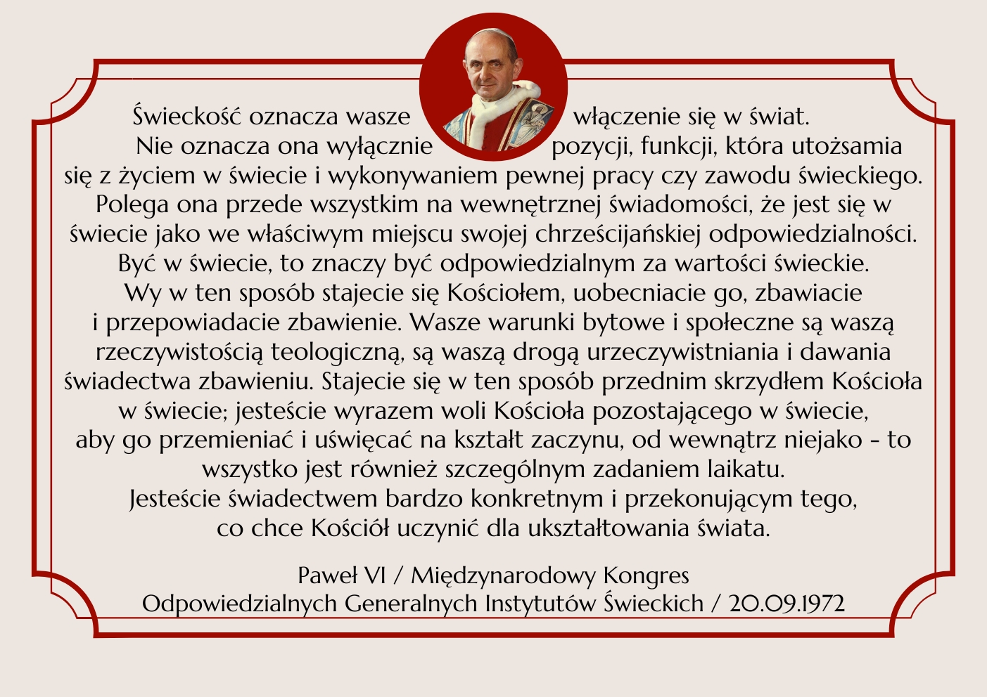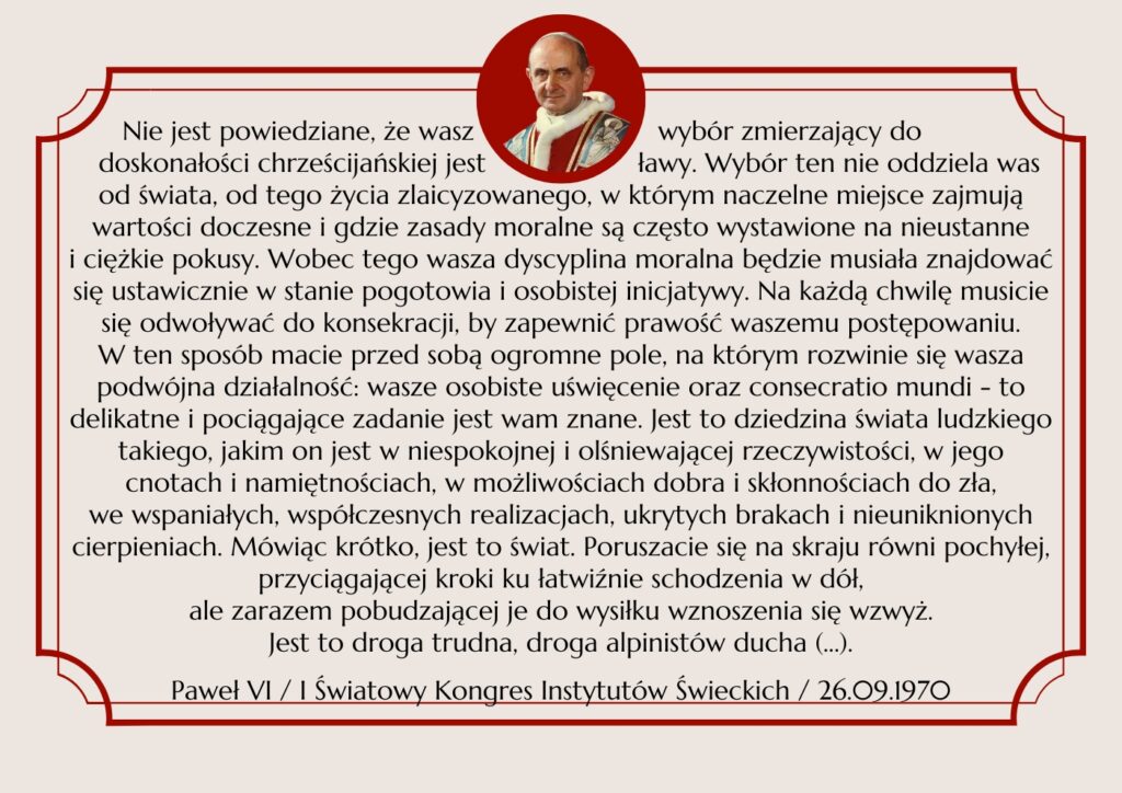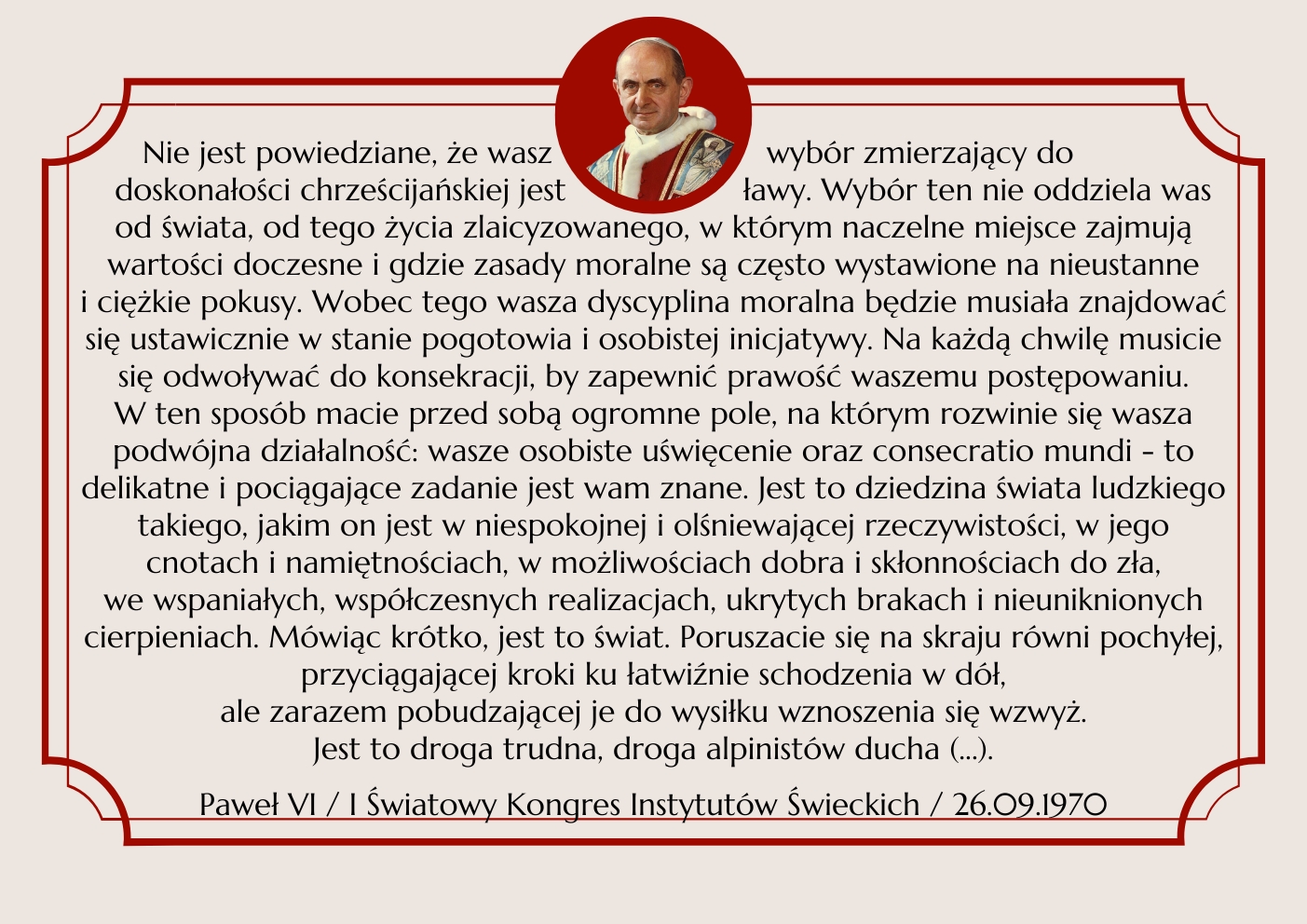 PAWEŁ VI ELIANUM ŚWIECKI INSTYTUT ŻYCIA KONSEKROWANEGO MENU HISTORIA WSPÓLNOTA ŚW. ELIASZ MULTIMEDIA KONTAKT