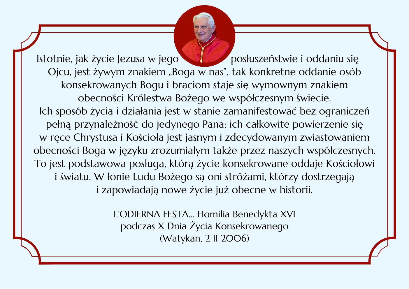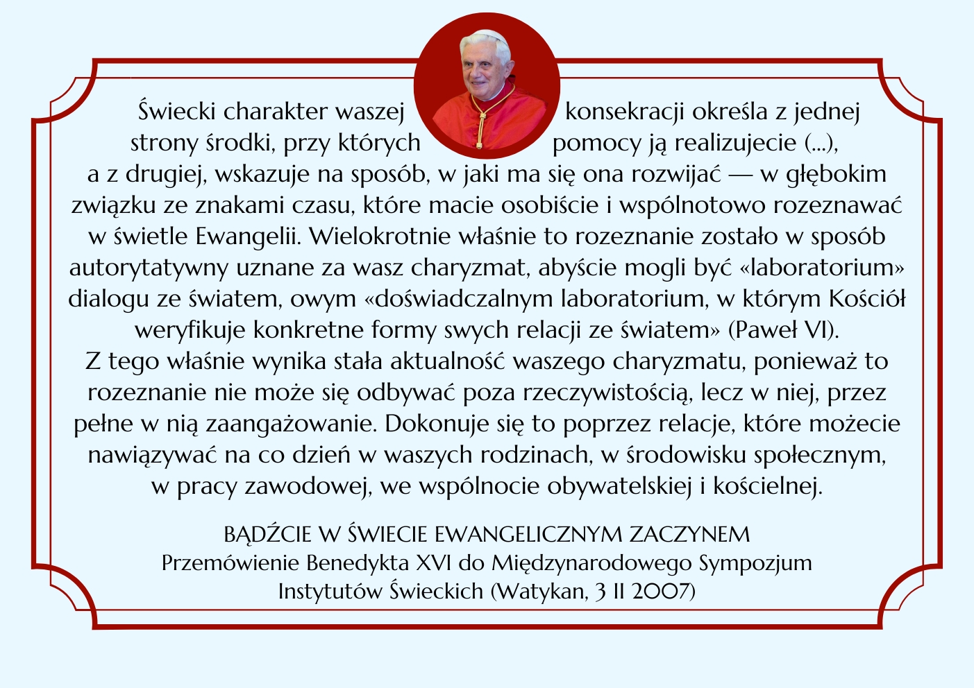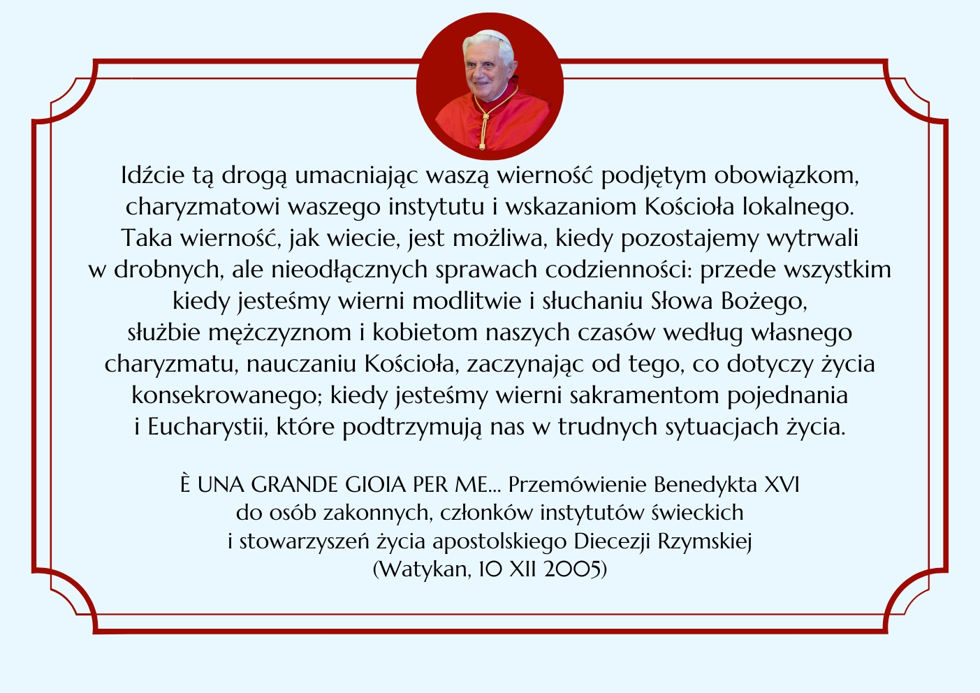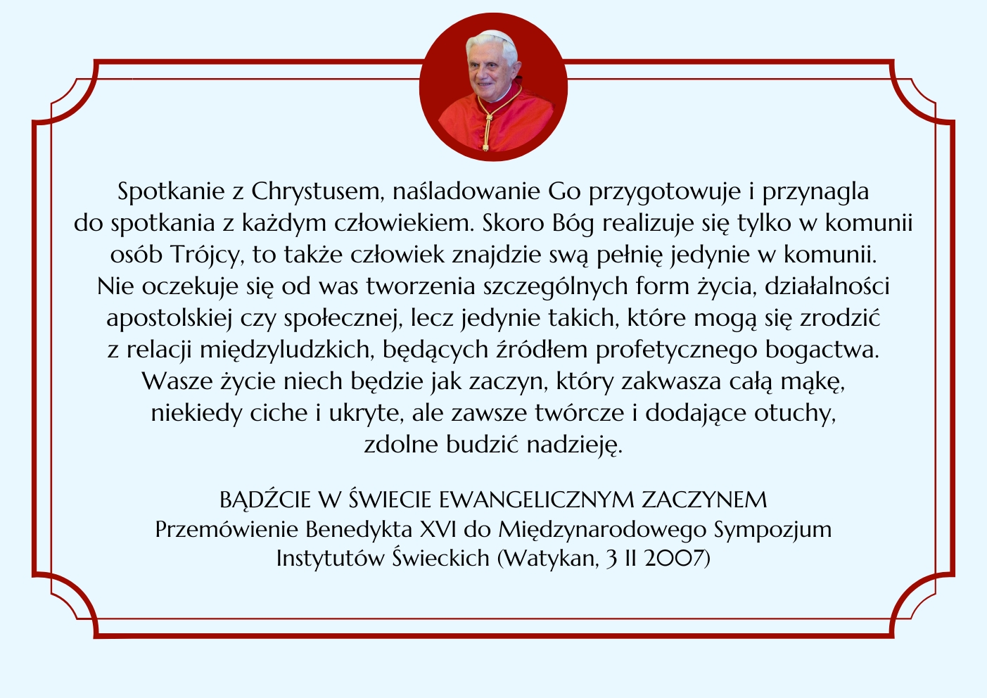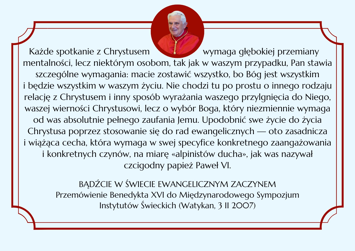 BENEDYKT XVI ELIANUM ŚWIECKI INSTYTUT ŻYCIA KONSEKROWANEGO MENU HISTORIA WSPÓLNOTA ŚW. ELIASZ MULTIMEDIA KONTAKT