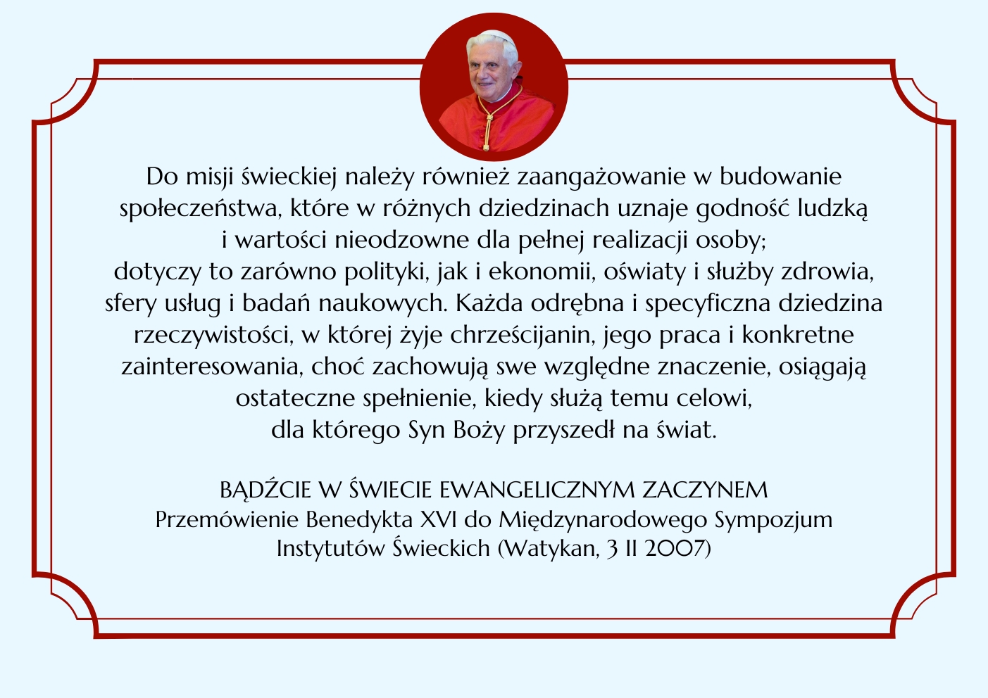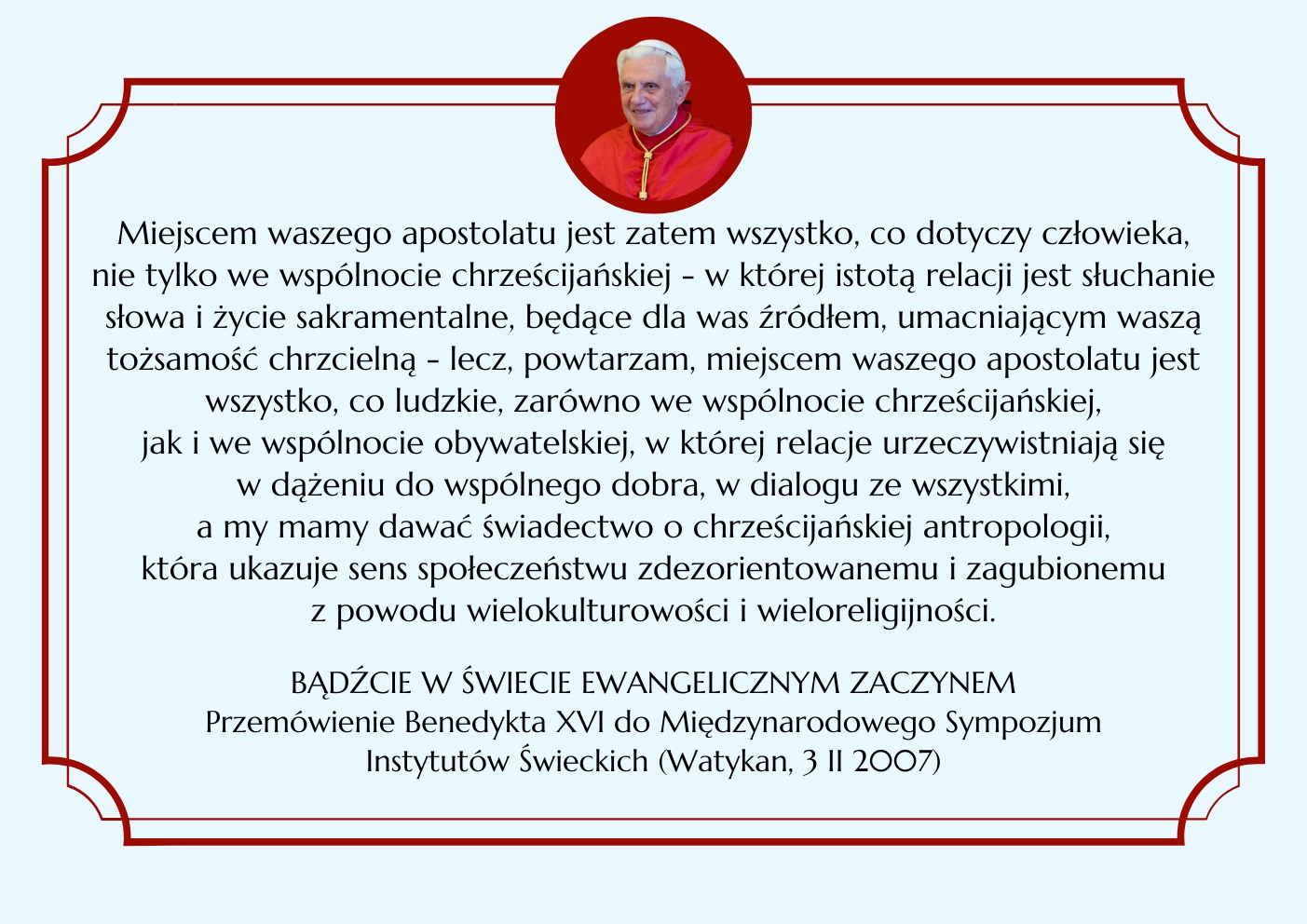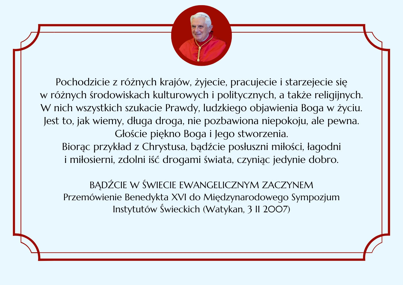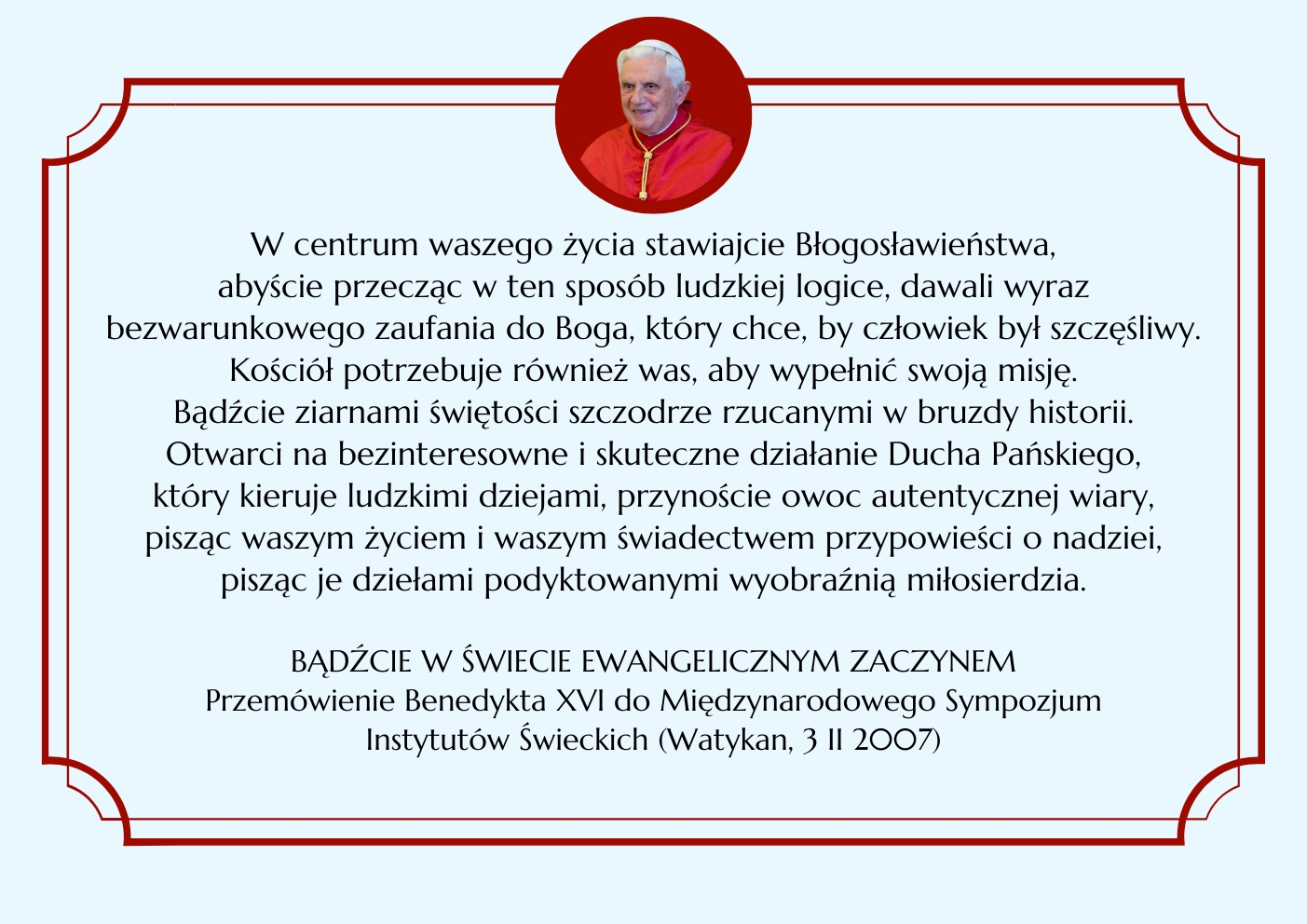BENEDYKT XVI ELIANUM ŚWIECKI INSTYTUT ŻYCIA KONSEKROWANEGO MENU HISTORIA WSPÓLNOTA ŚW. ELIASZ MULTIMEDIA KONTAKT