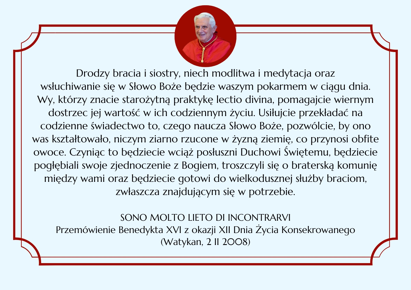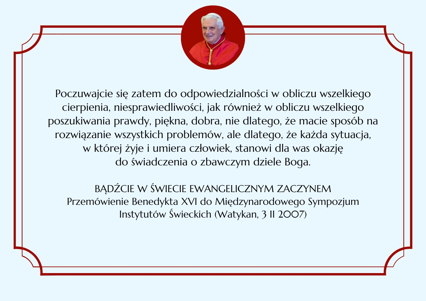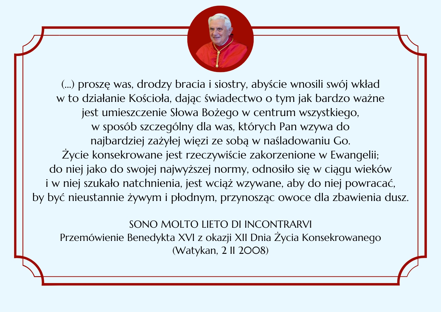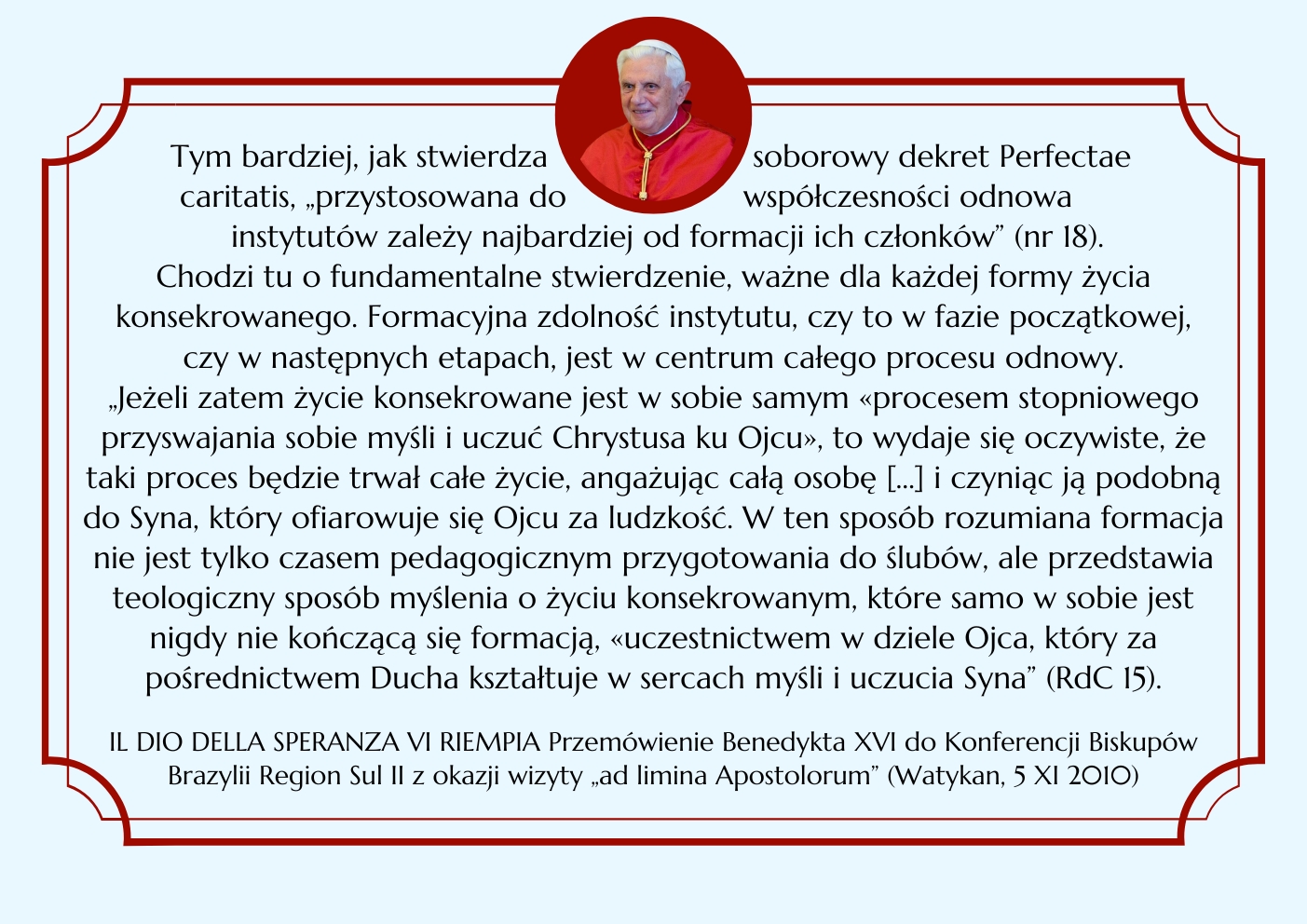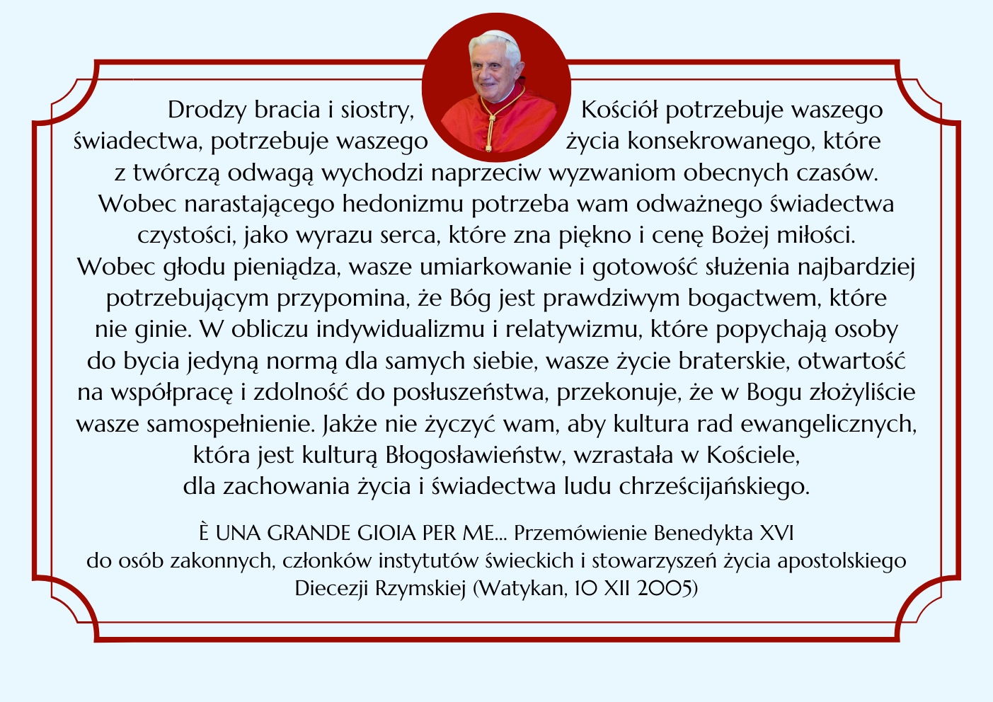 BENEDYKT XVI ELIANUM ŚWIECKI INSTYTUT ŻYCIA KONSEKROWANEGO MENU HISTORIA WSPÓLNOTA ŚW. ELIASZ MULTIMEDIA KONTAKT