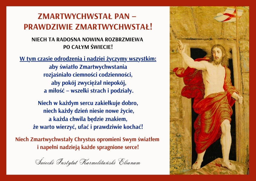 ALLELUJA, ZMARTWYCHWSTAŁ PAN! ELIANUM ŚWIECKI INSTYTUT ŻYCIA KONSEKROWANEGO MENU HISTORIA WSPÓLNOTA ŚW. ELIASZ MULTIMEDIA KONTAKT