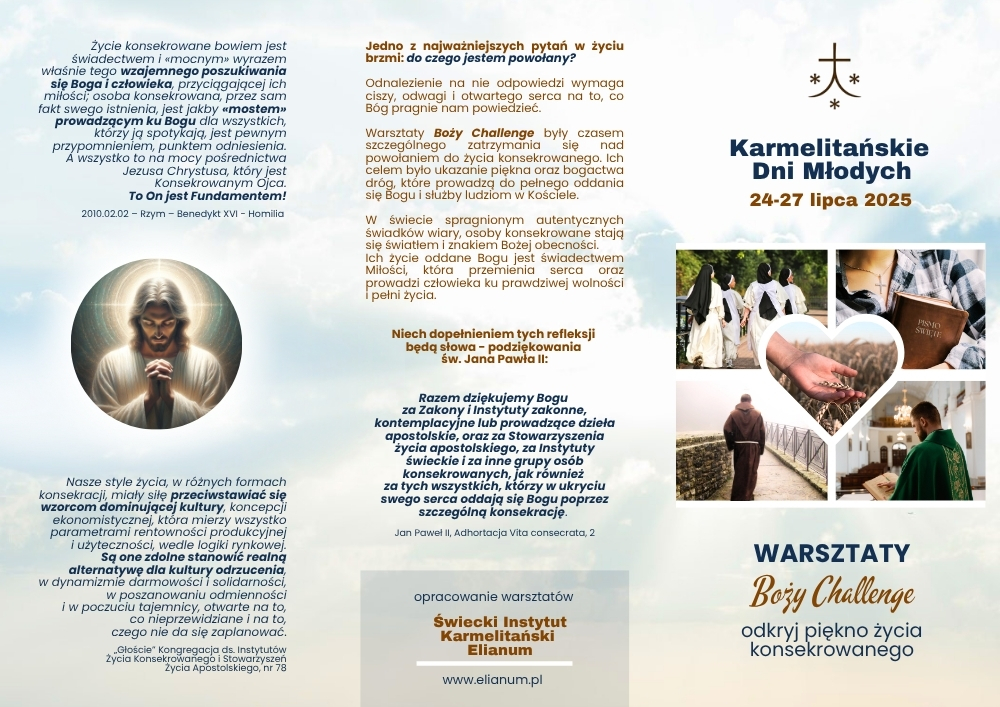 25 lipca nasz Instytut włączył się w Karmelitańskie Dni Młodych (KDM), współtworząc przestrzeń spotkania poprzez warsztaty zatytułowane: „Boży Challenge – odkryj piękno życia konsekrowanego”.